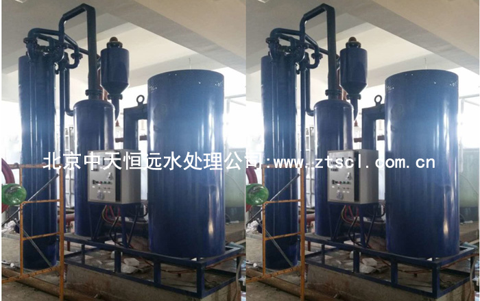 待處理的水有除氧泵輸送至引射器,水以一定流速通過引射器時,形成一定的負壓,將無氧氣體吸入,水與無氧氣體在混合管中充分混合,然后進入解析器,水中溶解的氧在解析系統中擴散到無氧氣體中。帶氧氣體自解析器頂部進入汽水分離器,經汽水分離器脫水后進入換熱器升溫至60-80攝氏度,進入加熱器,然后進入反應器,與反應器中的還原劑反應后重新成為無氧氣體,在進入下一個循環,從而發到連續工作的除氧目的。