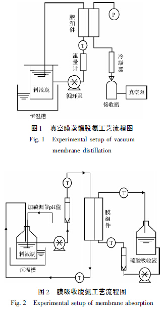 若將VMD 和MA 結(jié)合起來,有望實(shí)現(xiàn)高氨氮廢水的高效脫氨并解決廢吸收液的二次處置難題。本文在實(shí)驗(yàn)室規(guī)模下對(duì)VMD 和MA 脫除水溶液中的氨氮進(jìn)行了研究,并建立了一套全新的高效處理高氨氮廢水的集成膜工藝體系。