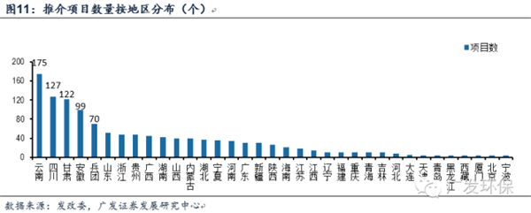 從推介項目數量的地區分布來看,批項目中,安徽、江蘇、貴州、山東、云南居前五位,分別有127、107、85、72、71個,合計占入庫項目總數的44.3%;第二批項目中,兵團、河北、安徽、山西、浙江居前五位,分別有166、139、138、120、93個,合計占入庫項目總數的44.09%。第三批項目中,云南、四川、甘肅、安徽、兵團居前五位,分別為175、127、122、99、70個,合計占入庫項目總數的48.09%。