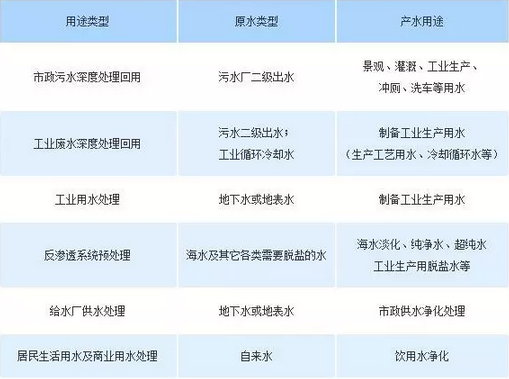 部分纖維膜MBR工藝處理范圍和用途