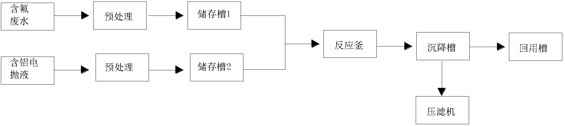 由于冰晶石反應(yīng)中需要鋁離子和酸,本發(fā)明創(chuàng)造性地提出將含氟廢水和電拋液兩種廢液混合,以廢治廢,并實(shí)現(xiàn)資源化回收。