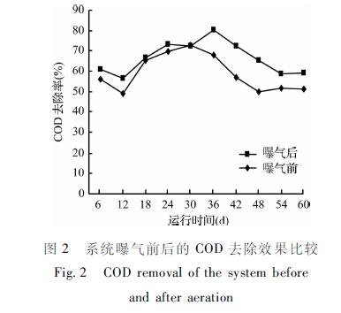 2.1.1 曝氣前后COD去除率比較