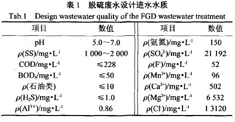 內(nèi)蒙古包頭第三熱電廠2x300 Mw供熱機(jī)組,位于包頭市黃草洼,與機(jī)組同期建設(shè) 100%煙氣處理量的脫硫裝置,煙氣脫硫采用石灰石-石膏濕法煙氣脫硫工藝(FGD)。 燃煤煙氣中含有少量從原煤中帶來(lái)的F-和Cl-及各種雜質(zhì),進(jìn)入脫硫吸收塔后被洗滌下來(lái)并進(jìn)入漿液,F(xiàn)-與漿液中的鋁聯(lián)合作用對(duì)脫硫吸收劑石灰石 的溶解產(chǎn)生屏蔽影響,致使石灰石溶解性減弱,脫硫效率降低;同時(shí),Cl-濃度過(guò)高對(duì)吸收塔系統(tǒng)和結(jié)構(gòu)有 腐蝕作用。因此,石灰石-石膏濕法煙氣脫硫過(guò)程通常需要排出一部分濾液水(吸收塔漿液經(jīng)脫水后產(chǎn)生)作為脫硫廢水,以達(dá)到控制CI-、F-離子濃度并維 持吸收塔物質(zhì)平衡的目的。而脫硫廢水許多指標(biāo) 均高于排放標(biāo)準(zhǔn),因此需要根據(jù)廢水水質(zhì)特點(diǎn)及本 廠具體情況設(shè)置廢水處理裝置處理脫硫廢水。