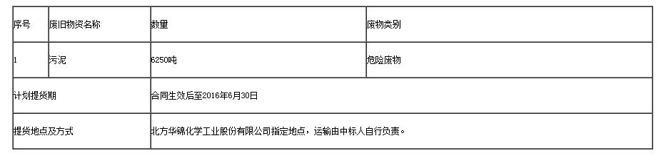 北方華錦化學工業股份有限公司污泥處置已經確定,現具備處理條件,歡迎有具備本公告要求資質能力的企業、及其它法人組織參加。