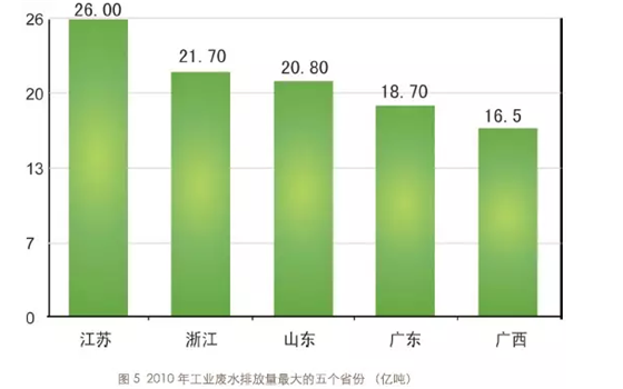 如圖1所示,造紙及紙制品業(yè),化學(xué)原料及化學(xué)制品制造業(yè),紡織業(yè),農(nóng)副食品加工業(yè),電力、熱力的生產(chǎn)和供應(yīng)業(yè)這五大行業(yè)占據(jù)了全國(guó)廢水排放總量的58%。