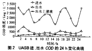 注:UASB出水有時(shí)帶泥,使所測數(shù)值過高。 |