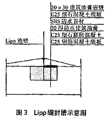 �、蹍捬跸薏捎肔ipp技術進行卷制。筒體材料采用不銹鋼復合高強度板卷制,在罐頂上部安裝有壓頂槽鋼,采用不銹鋼螺栓與筒體之間的定位,不采用焊接方式。筒體制作完成后,進行罐內的金屬結構安裝。由于罐體為金屬結構,罐頂可在罐內金屬結構完成后再進行安裝,這樣給罐內的安裝工作帶來了極大的便利。厭氧罐內設有布水器,布水器采用枝狀布水,隔3m2設有一個布水頭,布水較為均勻。三相分離器的安裝是罐內金屬結構安裝的重點,由三個圓錐形正反斗組成,施工要求高、難度大。在施工中充分利用罐頂后施工的特點,三個圓錐斗在外進行拼接,然后到罐內進行安裝,降低了施工難度和勞動強度,工程質量也較容易控制,加快了工程進度。安裝完成三相分離器和溢流槽后,進行罐頂的安裝施工工作。罐體保溫材料采用阻燃型的聚苯乙烯泡沫板,外殼采用彩色瓦楞鋼板,瓦楞鋼板采用特制的定位卡頭扁鋼定位,安裝效果良好。Lipp罐體與鋼筋混凝土之間的澆筑采用膨脹混凝土(見圖3)。
