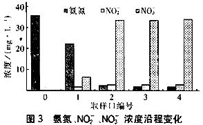 試驗過程中以生活污水為原水(COD平均為334mg/L,氨氮平均為32.3mg/L), 而氨氮的去除效果隨反應器設置的回流比不同而有所變化(見表4)。