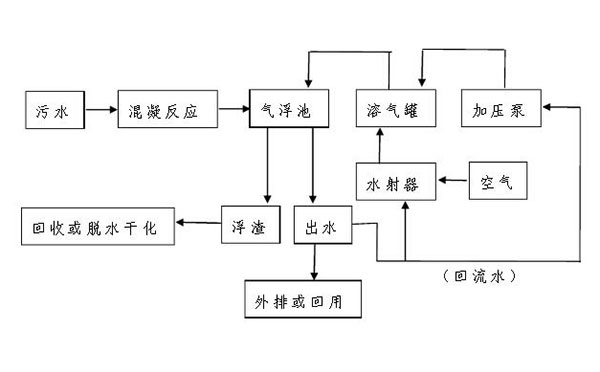 氣浮工藝是指利用高度分散的微小氣泡作為載體粘附于廢水中污染物上,使其浮力大于重力和上浮阻力,從而使污染物上浮至水面,形成泡沫,然后用刮渣設(shè)備自水面刮除泡沫,實(shí)現(xiàn)固液或液液分離的過(guò)程稱(chēng)為氣浮法。氣浮過(guò)程的必要條件是:在被處理的廢水中,應(yīng)分布大量細(xì)微氣泡,并使被處理的污染質(zhì)呈懸浮狀態(tài),且懸浮顆粒表面應(yīng)呈疏水性,易于粘附于氣泡上而上浮。