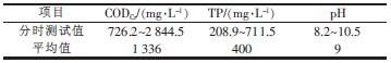 試驗(yàn)廢水取自廠區(qū)濃縮車間,其中含有草甘磷、亞磷酸二甲酯、亞磷酸、三乙胺等污染物,TP 含量很高,以有機(jī)磷為主。其主要水質(zhì)指標(biāo)見表1。
