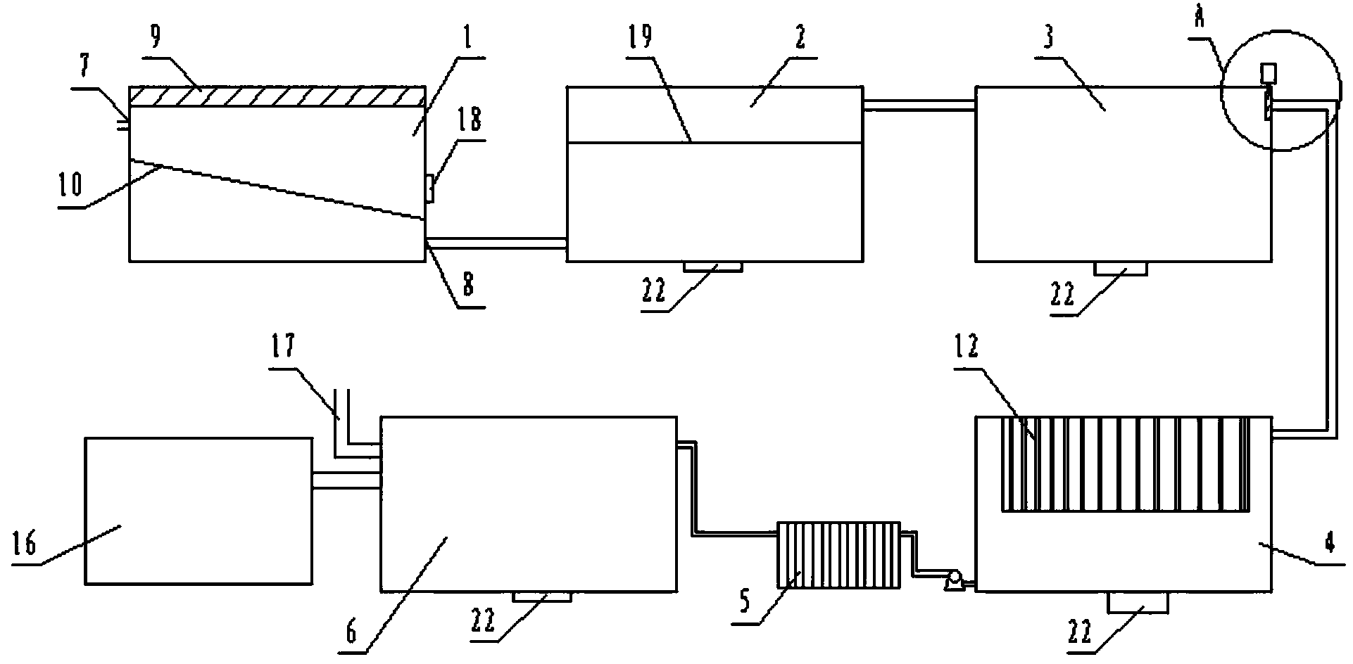 6.根據(jù)權(quán)利要求1所述地面雨水處理系統(tǒng),其特征在于:所述平流池(2)下部、投藥池(3)下部、電極沉淀池(4)下部和沉淀池(6)下部均設(shè)有排污口(22)。
