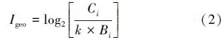 德國海德堡大學Muller教授提出的地積累指數(geoac cumulation index,Igeo)法是研究水體沉積物重金屬污染應用比較廣泛的一種方法,計算公式如下: