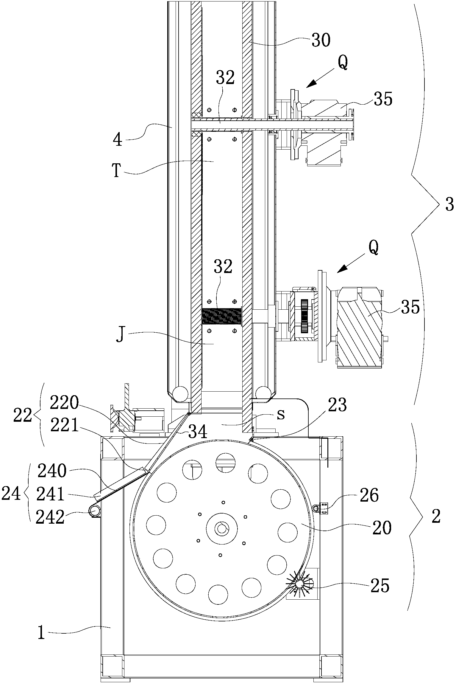 優(yōu)選地,在隔離筒的透水區(qū)和擠壓區(qū)上分別設(shè)有繞自身軸線能夠轉(zhuǎn)動(dòng)且相互平行設(shè)置的轉(zhuǎn)軸,該轉(zhuǎn)軸與驅(qū)動(dòng)機(jī)構(gòu)連接或一體設(shè)置,且位于擠壓區(qū)內(nèi)多根轉(zhuǎn)軸并排設(shè)置。