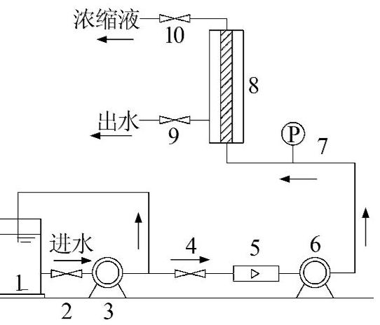 6—增壓泵;7—壓力表;8—膜組件。