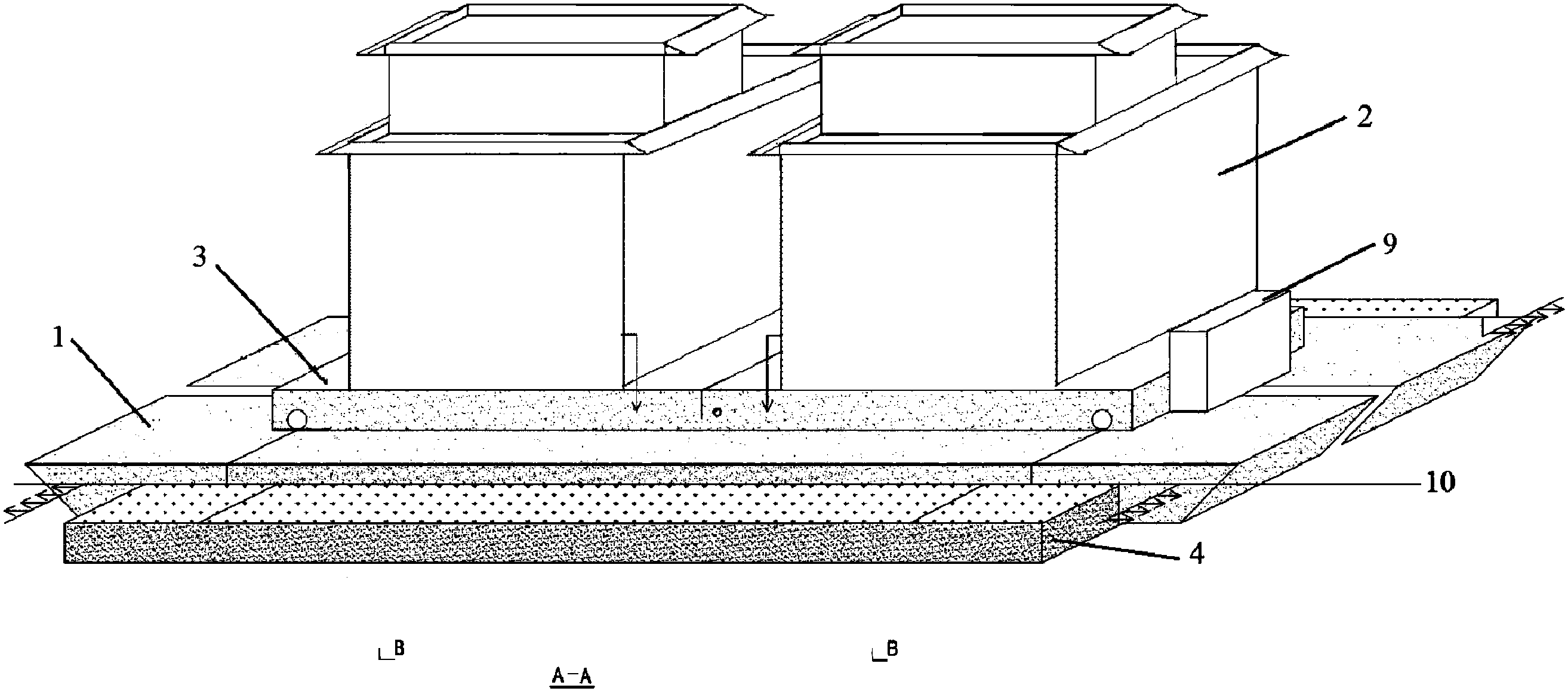 1.一種用于黑臭水體凈化的漂浮式污水處理裝置,其特征在于,該漂浮式污水處理裝置包括船體(1)、生態(tài)處理床組合器(2)、二沉池(3)和生態(tài)小島(4);所述生態(tài)處理床組合器(2)設(shè)置在所述船體(1)上,所述二沉池(3)設(shè)置在所述船體(1)前后兩端,所述生態(tài)小島(4)位于所述船體(1)左右兩側(cè),所述生態(tài)處理床組合器(2)與所述二沉池(3)聯(lián)通;所述生態(tài)處理床組合器(2)至少包括從上到下依次堆疊的層至第八層生態(tài)床(5),每層所述生態(tài)床(5)依次設(shè)有進(jìn)水室(6)、填料室(7)和出水室(8),所述填料室(7)側(cè)壁上設(shè)置有電子起搏器;所述出水室(8)設(shè)有出水口,上一層生態(tài)床的出水室(8)與下一層生態(tài)床的進(jìn)水室(6)通過出水口聯(lián)通,層生態(tài)床填料室(7)填充有PVC填料,第二層生態(tài)床填料室(7)填充有粒徑為10~15cm的卵石,第三層生態(tài)床填料室(7)填充有陶粒,第四層生態(tài)床填料室(7)填充有粒徑為7~9cm的卵石,第五層生態(tài)床填料室(7)填充有砂石,第六層生態(tài)床填料室(7)填充有砂石與活性炭的混合物,第七層生態(tài)床填料室(7)填充有陶料,第八層生態(tài)床填料室(7)填充有粒徑為6~8cm的卵石。
