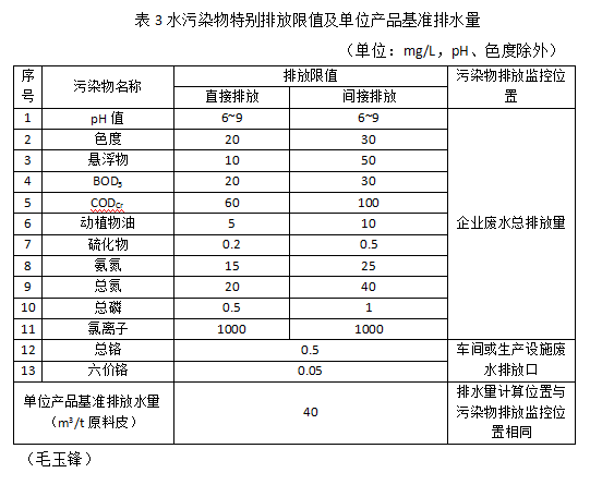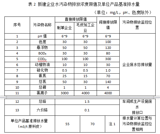 注1:制革企業和毛皮加工企業的單位產品基準排水量的間接排放限值與各自的直接排放限值相同。具體聯系污水寶或參見http://www.dowater.com更多相關技術文檔術文檔。