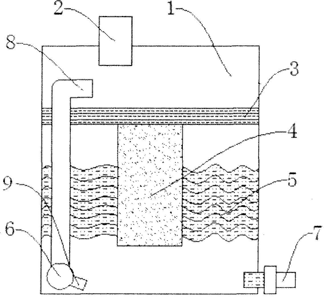 技術人員介紹,該微生物過濾器包括活化桶、入水管、顆粒過濾層、活性炭過濾器、滲透層、循環泵和出水口;所述入水管安裝在活化桶頂端;所述顆粒過濾層安置在活化桶內部上端;所述活性炭過濾器位于顆粒過濾層下方;所述滲透層對稱安置在活性炭過濾器兩側;所述循環泵安裝在活化桶內部邊側;所述出水口置于活化桶底部邊側。